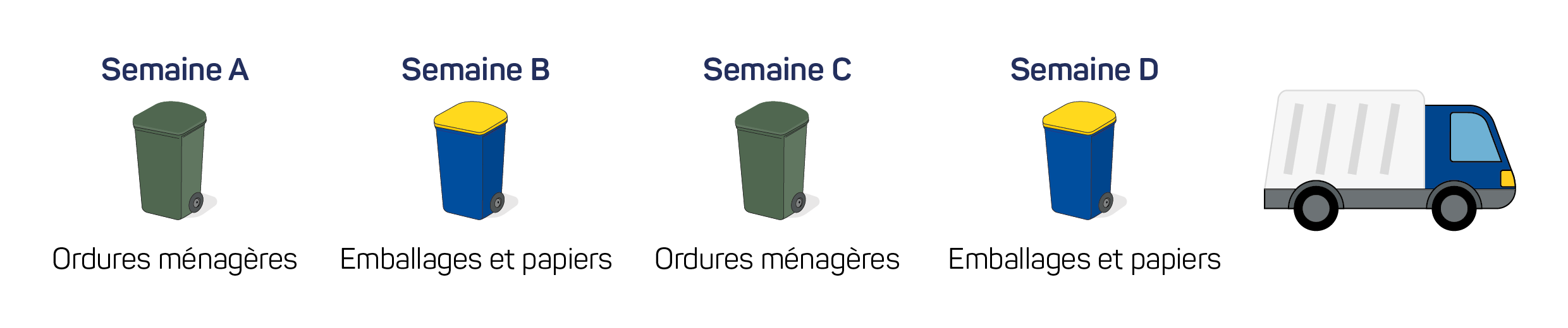 - le bac jaune (emballages et papiers) sera collecté tous les 15 jours (en alternance avec les ordures ménagères)